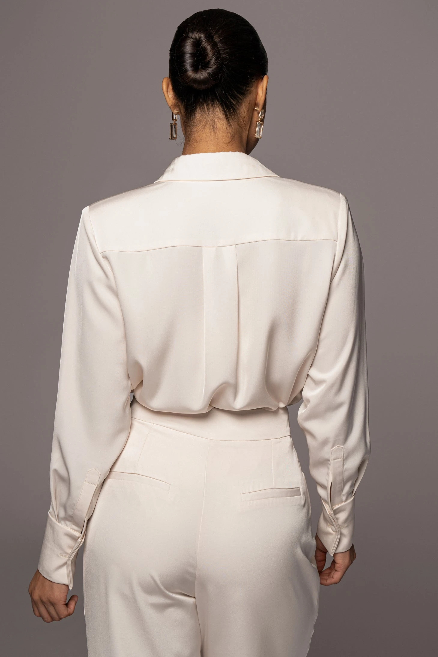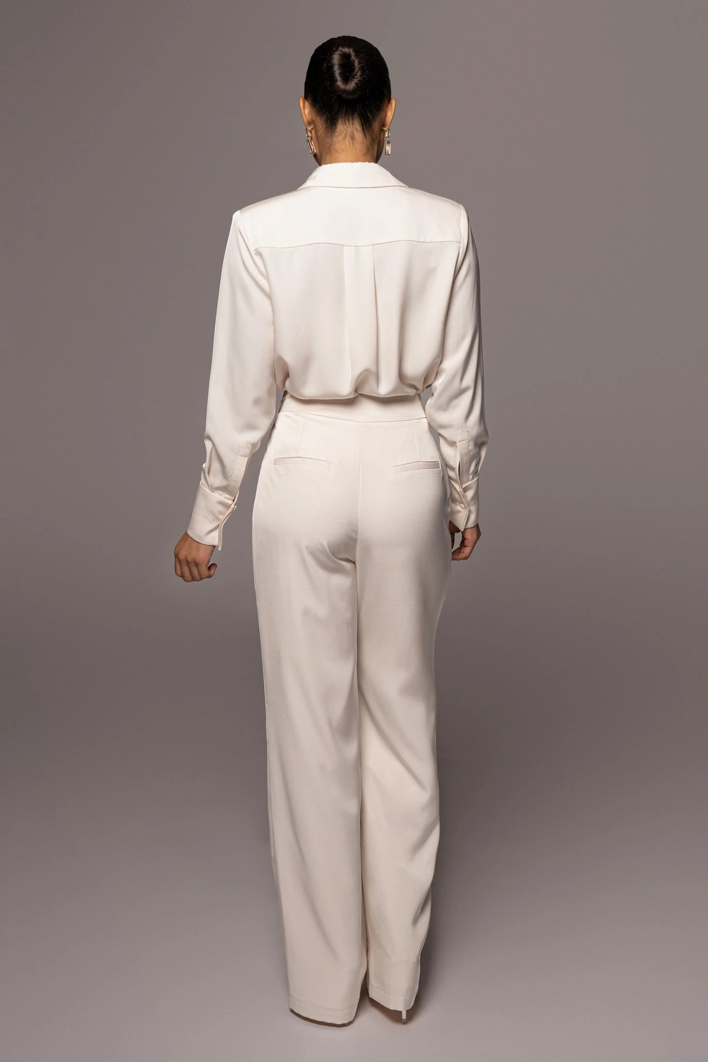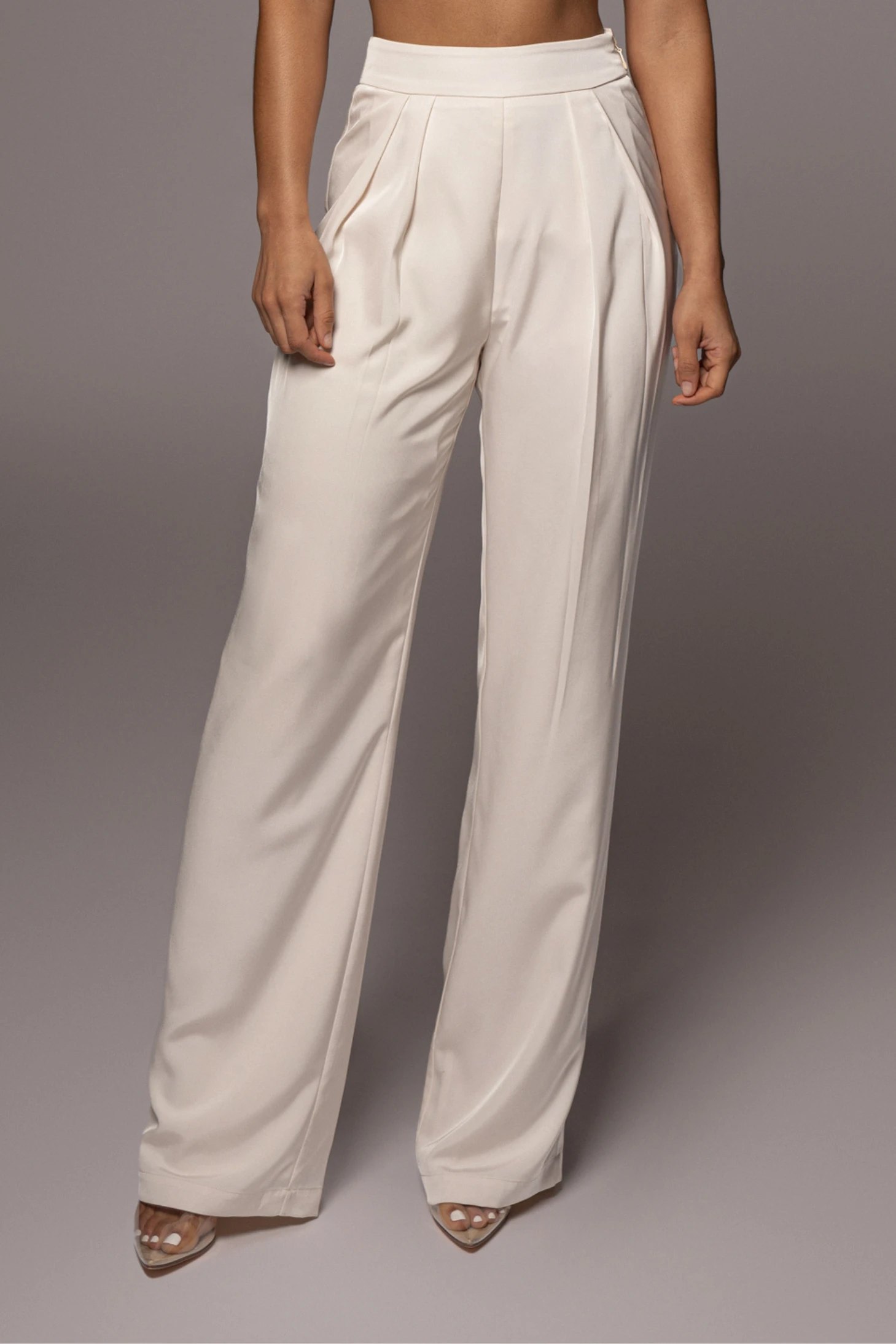 Our new Buttercream Candice Trousers provide polish and form! Featured in a lightweight fabric with satin like lining, these trousers come with a top waistband, pleat detailing, and straight leg hems. Complete with two back faux pockets and a side zipper closure. Coordinate the full look with our