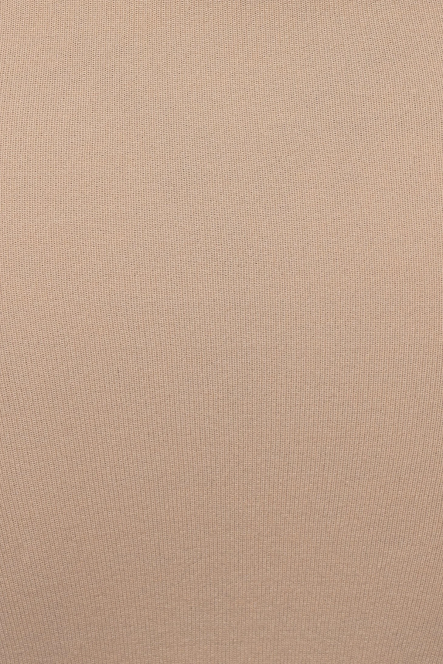 EXCLUSIVELY DESIGNED BY US FOR YOU. Fall for our latest showstopper the BUTTERCREAM UNDER YOUR SPELL DRESS. This classy midi dress features a mock neckline with long sleeve arms and flattering ribbed hems and sides for a modern touch. A stunning cut out back with a D-ring belt detail finishes the look. Padded shoulders. Stretchy.