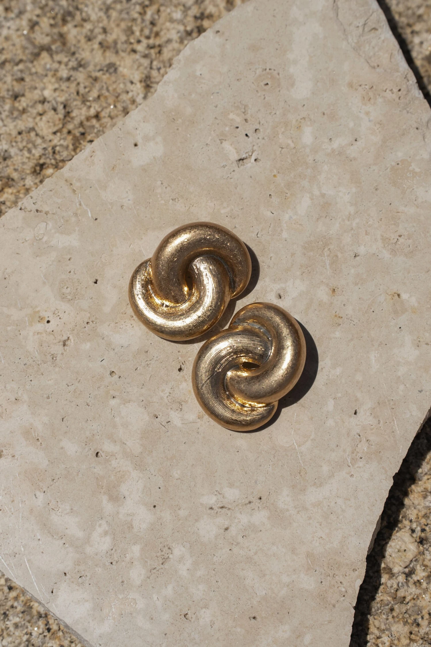 These Gold Jonie Earrings are a stylish and subtle accessory. Featuring a circular interlocking design in a gold tone, this subtle pair of earrings will adds a touch of class to your look. Push back closure.
