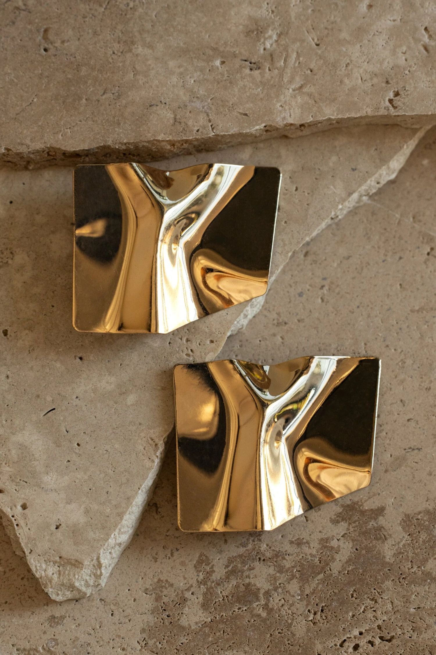 Achieve effortless, eye-catching style with our Gold Leanna Crumpled Earrings. Crafted in gold-tone finish and shaped into a squared design, these earrings add subtle texture to your look for a sparkling finish. Push back closure.Â