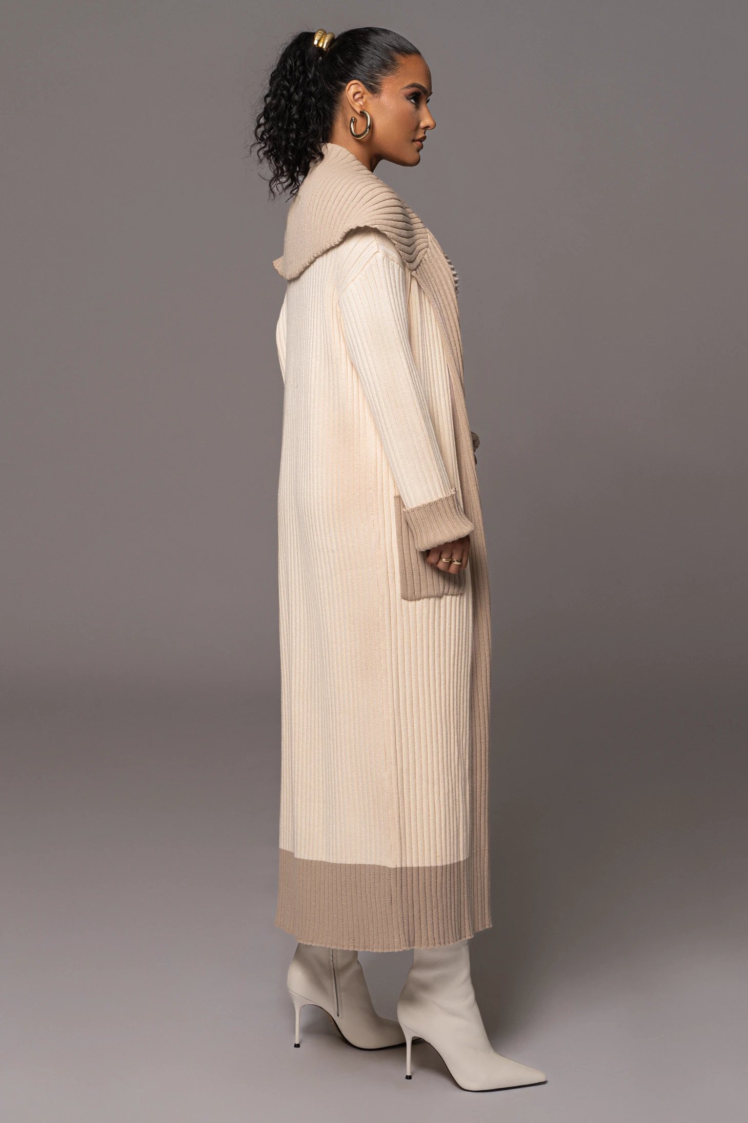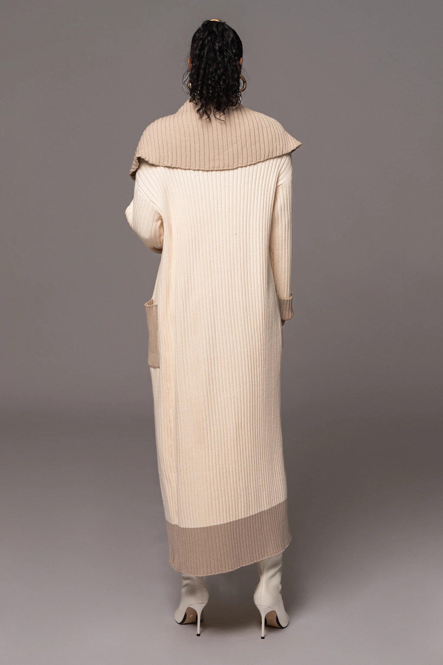 Crafted in classic rib-knit fabrication, our new Ivory Carmela Rib Knit Cardigan features a stylish shawl collar lending extra style as an optional scarf. An open-front with long-sleeve arms and a longline hem finish the look. Oversized. Stretchy.