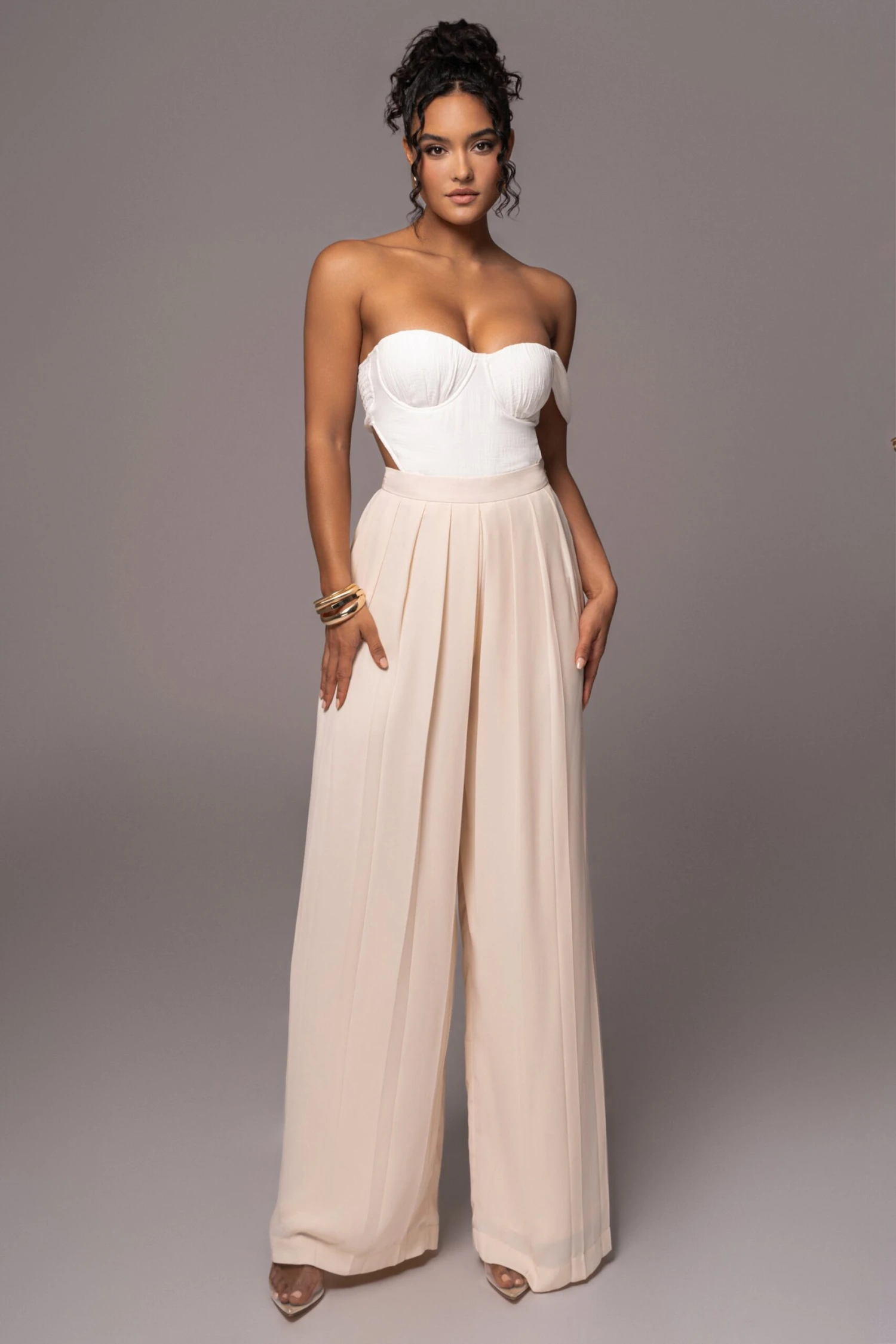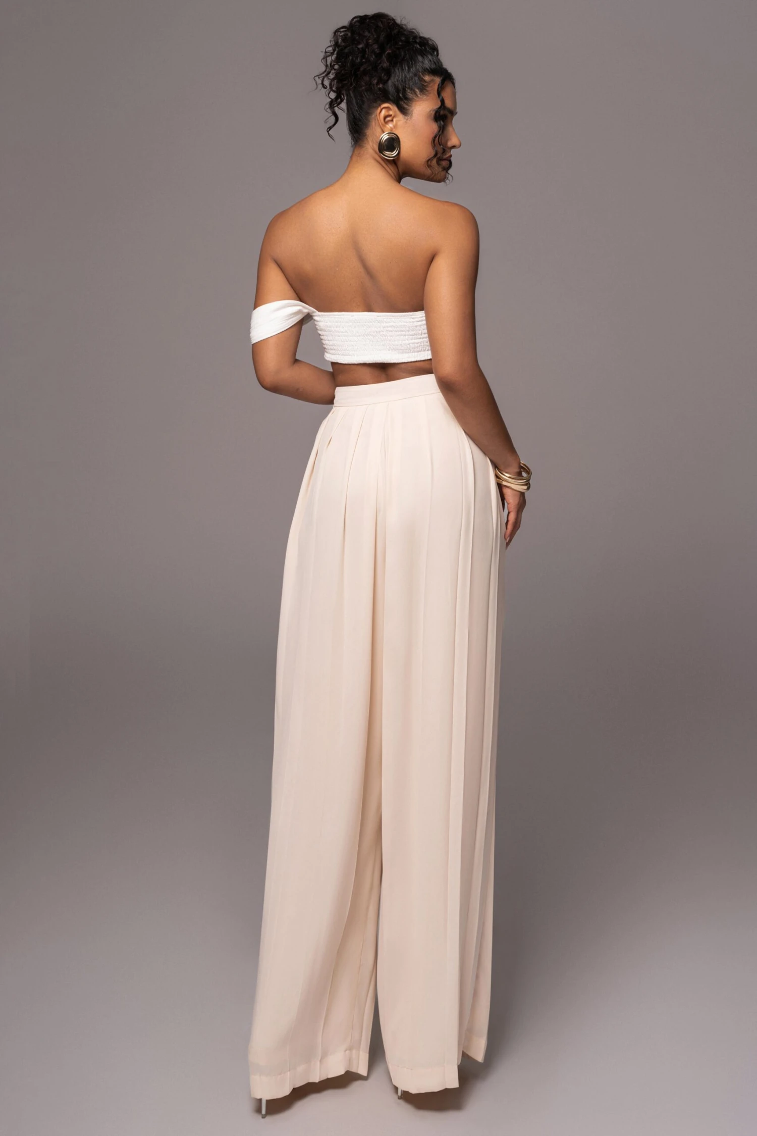 Blossom in style this Summer with our Ivory Josette Wide-Leg Pleated Pants. Crafted from lightweight chiffon fabric, these sophisticated pants showcase delicate pleating at the waist with a high-waist and wide leg hems. Pair with ourÂ
