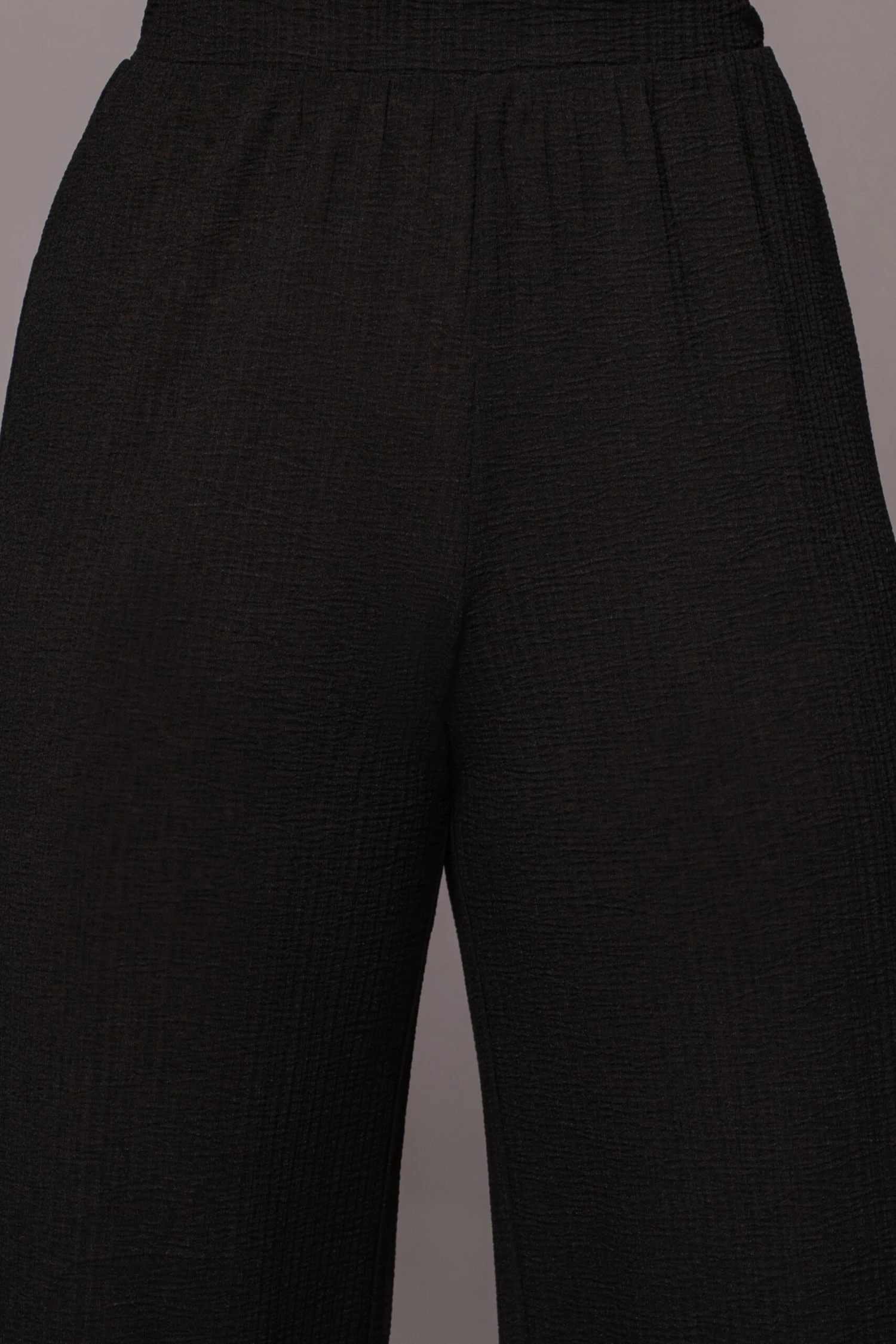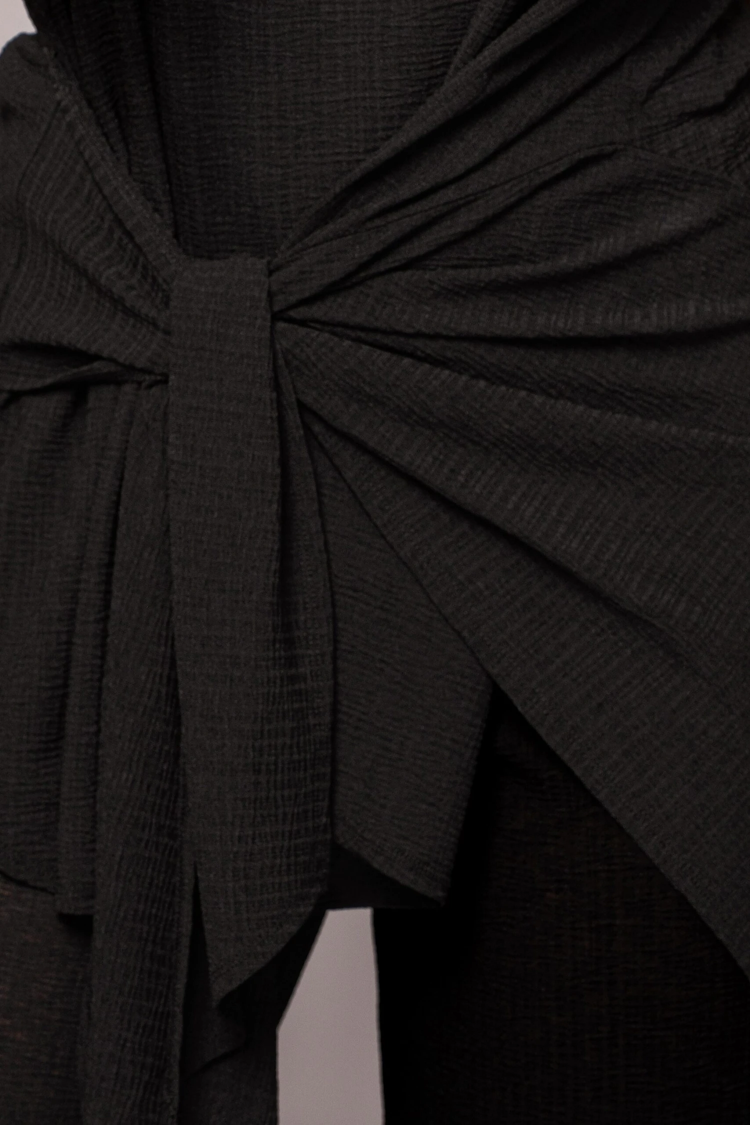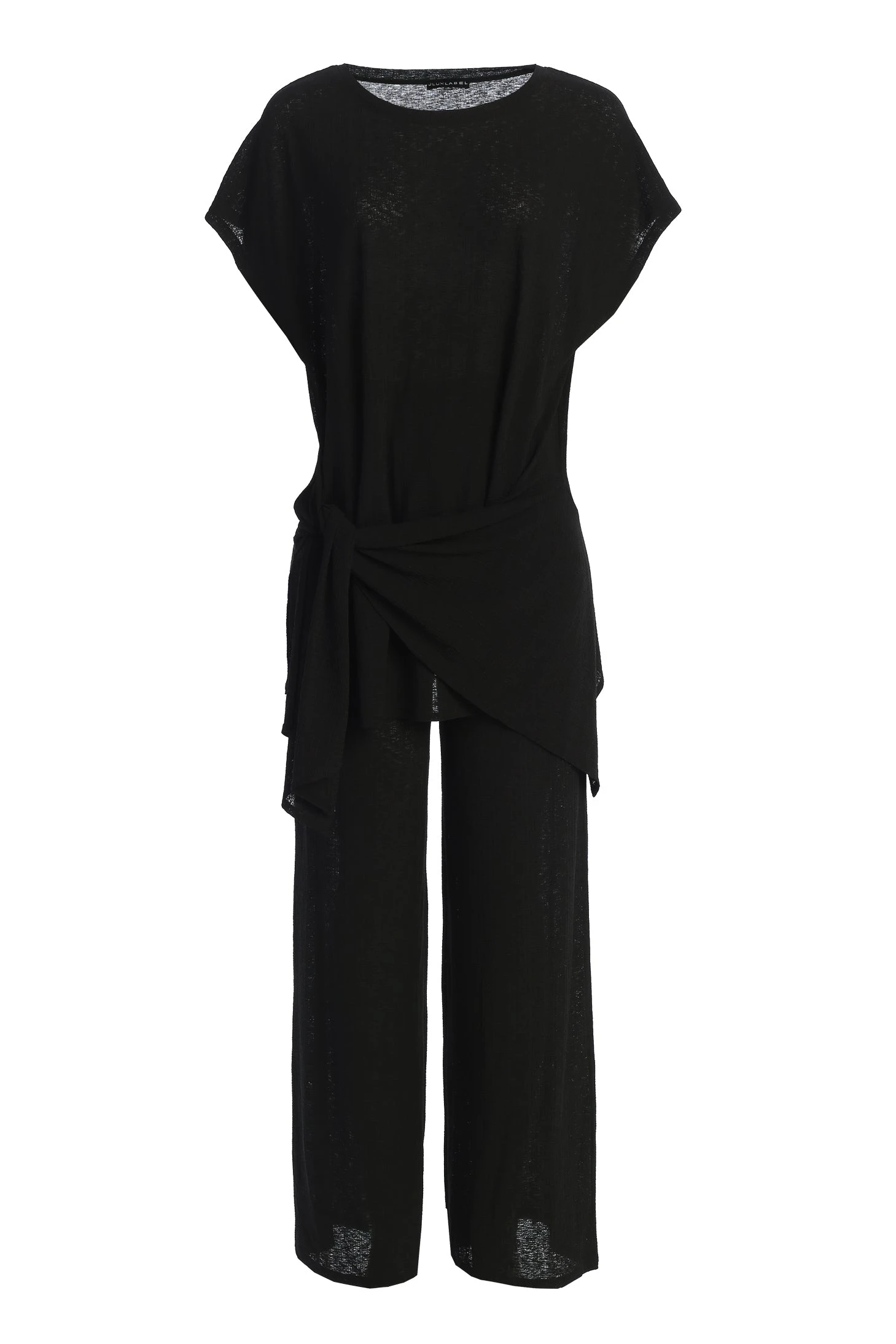 Our Noir Chase The Sun Two-Piece Set is here to stay all summer! This stylish pant set features an oversized sleeve top with front wrap design. The matching pants come with an elastic waistband and classic straight legs for an instant day to night look. Stretchy. Single lined. Sold as set.