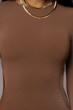 The Pecan Break Away Maxi Dress is at the top of our list this season. Crafted in smooth double lined fabric, our latest maxi exudes elegance at all angles with a classic mock neckline, long-sleeve arms, and side mesh panels starting from the underarm down to the hem detailing side cutouts. Complete with a detachable layered necklace in a gold-tone finish and a back slit hem. Double-lined. Stretchy.